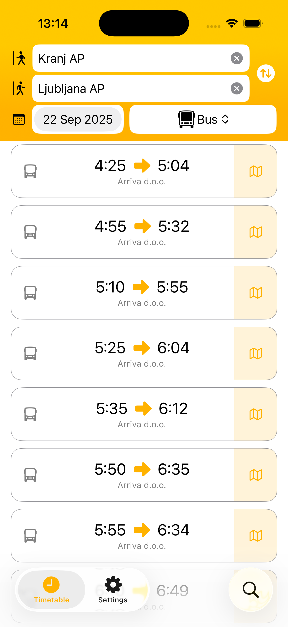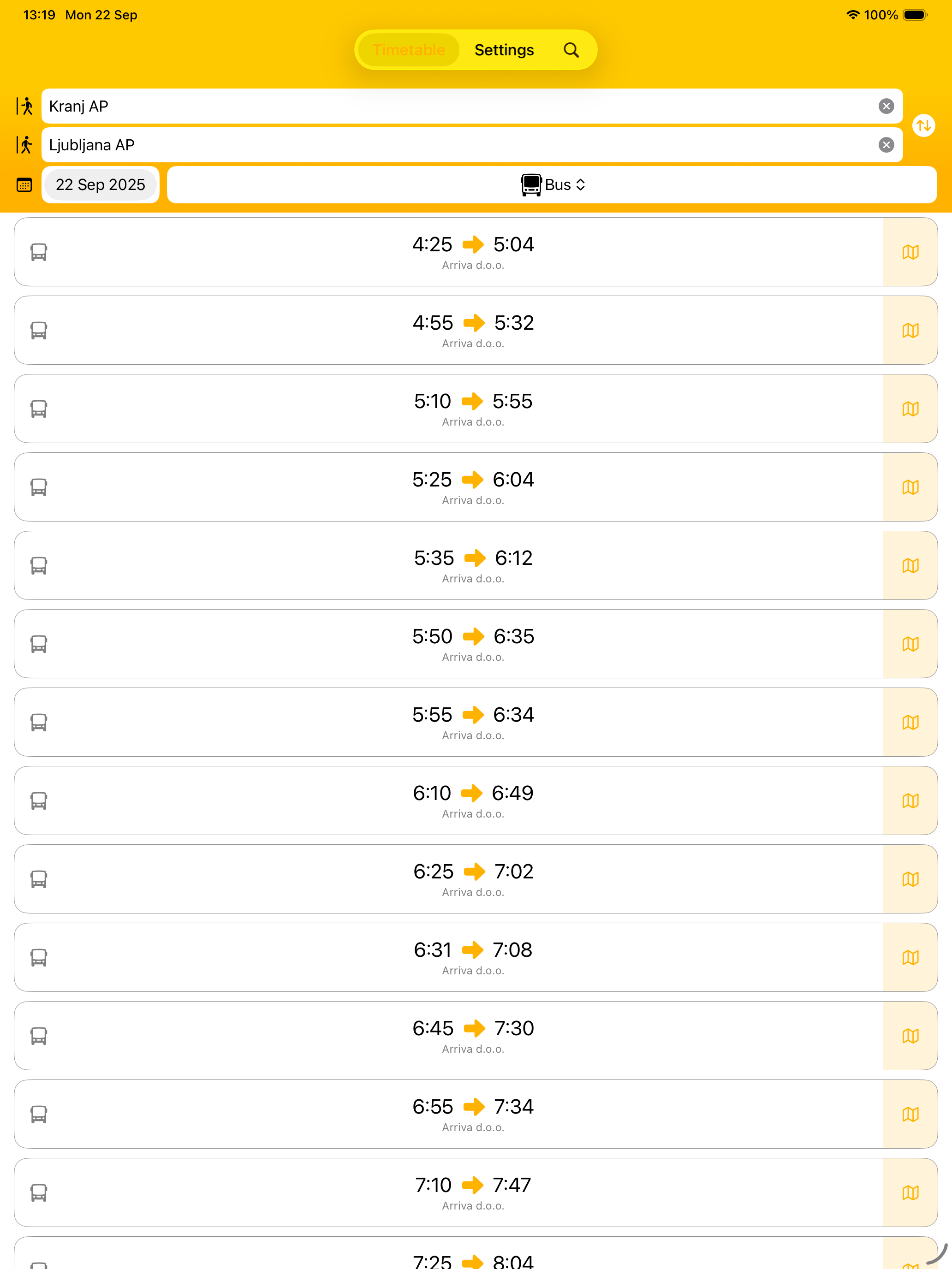 exploring Maribor, or venturing off the beaten path, Slo-Motion brings real-time bus and train schedules